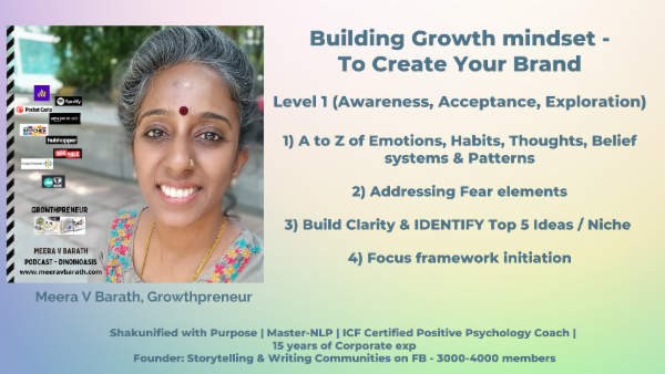 "My coaching and content are centered around my mission to transform words and emotions into compelling stories, fostering emotional and mental well-being while assisting YOU in the journey of shaping your Brand from a mere idea. This serves as the introductory foundation for Level 1 of my course, which focuses on cultivating a Growth Mindset to give life to your Brand.